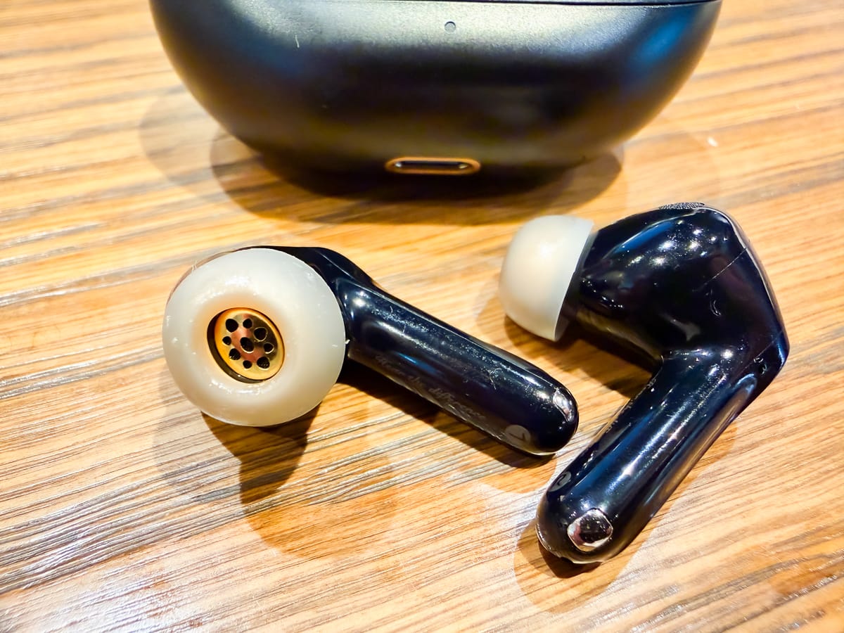 特徴的なのは、イヤーチップが楕円形をしている点。これのおかげか、耳の中にしっかりとフィットしてくれて、安定感と気楽さがある。